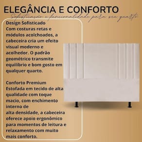 Conforto: Espuma de densidade D23, garantindo apoio firme e aconchegante para momentos de descanso e leitura na cama.
