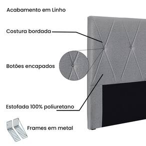 Dormir bem e manter-se seguro na hora de relaxar são fatores importantes que influenciam na qualidade do sono. Unir esses pontos com uma decoração incrível seria perfeito, não é mesmo? Que tal começar essa mudança pela cabeceira da sua cama!? A Cabeceira Aquilla sem dúvida vai roubar a cena de tão linda e aconchegante! A estrutura é feita em madeira de eucalipto, uma opção que ressalta a durabilidade e beleza da peça. A cabeceira é preenchida com espuma D23, garantindo um conforto ideal para noites mais tranquilas. Este modelo é indicado para Cama Box Casal de 140 cm, contém costura em losangos com botões encapados que conferem uma textura maleável e um visual refinado. O revestimento foi feito no Linho, um tecido de alta qualidade no tom Cinza perfeita para criar uma atmosfera mais aconchegante ao local. As sapata são de plástico além de serem muito resistentes garantem maior flexibilidade e sustentação à peça. E não menos importante acompanha frame em metal que é o suporte ideal para fixar a cabeceira na cama box. O design desta peça apresenta um elemento estético sofisticado, que transformará instantaneamente o ambiente e impedirá que a passagem de temperaturas (frio/quente) que se concentram na parede, passem diretamente para o usuário. A Cabeceira Aquilla é a opção mais adequada para o seu dormitório, afinal de contas você merece o que há de melhor para completar a decoração da sua casa. Adquira a Cabeceira Aquilla antes que acabe o estoque! Dimensões da Cabeceira: Altura total: 125 cm Largura total: 140 cm Profundidade total: 8 cm Peso: 10 kg Especificações do Produto Estrutura: Madeira De Eucalipto Espuma: D-23 Tecido: Linho Tipo de pés: Sapatas Plasticas Garantia: 90 dias contra defeito de fabricação Montagem: Produto vai montado. Instruções de limpeza: Utilizar um pano limpo e levemente úmido Você irá receber: 01 Cabeceira Entregue em: 01 Volume
