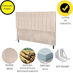 Materiais de Qualidade: Fabricada em madeira eucalipto de alta qualidade, esta cabeceira é revestida em suede, proporcionando um toque macio e agradável. O acabamento em espuma D-23 garante conforto excepcional.
