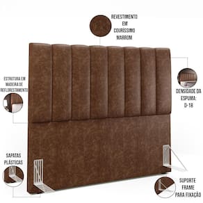 Cabeceira Cama Box Casal 140 Cm Dália W01 Couríssimo Marrom - Lyam Decor A Cabeceira Para Cama Box Dália é uma peça que traz graciosidade ao quarto. Além de dar um toque clássico, ela traz conforto e deixa o ambiente mais moderno e atrativo. Você pode deixar o quarto mais bonito e funcional compondo ela com uma mesinha de cabeceira, ou uma mesa de apoio ao lado da cama. Detalhes que fazem a diferença! Seus momentos de descansar serão mais agradáveis com um móvel incrível igual a esse em seu quarto. Garanta já á sua! Dimensões da Cabeceira (L x A x P) 140 x 120 x 8 cm Dimensões do Frame (L x A x P) 5,5 x 13,5 x 16,5 cm Características da Cabeceira: Estrutura em madeira. Revestimento em tecido sintético Couríssimo Marrom. Densidade da Espuma D-18. Acompanha todos os acessórios para fixação. Acompanha suporte frame produzido em chapa de ferro com acabamento em esmalte PU na cor alumínio. Possui sapatas plásticas. Características do Frame: Produzido em chapa de ferro 1,5 mm. Acabamento em esmalte PU na cor Alumínio. Acessórios para fixação: 04 Parafs cabeça a auto atarraxantes 5,0x25mm e 04 arruelas 1/4. - Por se tratar de estofado as medidas podem ter uma pequena variação de até 3 cm. - A tonalidade do produto real poderá ter ligeira variação devido o lote de tecidos. Observações importantes: - Produto para residencial em ambiente interno, não devendo ficar exposto diretamente ao sol, calor e umidade excessivos. - Pode haver alguma diferença de tonalidade entre a imagem e o produto real, por conta do tratamento de imagens e a calibração de cores do seu monitor. - As imagens são meramente ilustrativas, não acompanham objetos de decoração e eletrônicos. - Ao receber a mercadoria, o cliente deve verificar as condições da embalagem, caso haja alguma não assine o comprovante de recebimento. - Montagem, desmontagem e outras instalações serão de responsabilidade do cliente. Não nos responsabilizamos, no ato da , por subir escadas/elevadores ou pelo transporte por guincho em apartamentos. Eventuais despesas são de responsabilidade do comprador. - Confira as dimensões do produto e certifique-se de que passará normalmente por supostos elevadores, portas, escadas e/ou corredores de sua residência. NA