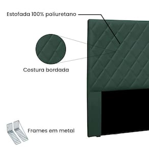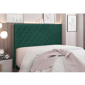Dormir bem e manter-se seguro na hora de relaxar são fatores importantes que influenciam na qualidade do sono. Unir esses pontos com uma decoração incrível seria perfeito, não é mesmo? Que tal começar essa mudança pela cabeceira da sua cama!? A Cabeceira Dubai sem dúvida vai roubar a cena de tão linda e aconchegante! A estrutura é feita em madeira de eucalipto, uma opção que ressalta a durabilidade e beleza da peça. A cabeceira é preenchida com espuma D23, garantindo um conforto ideal para noites mais tranquilas. Este modelo é indicado para Cama Box Casal de 140 cm, contém costura em losangos que conferem uma textura maleável e um visual refinado. O revestimento foi feito no Veludo, um tecido de alta qualidade no tom Verde perfeita para criar uma atmosfera mais aconchegante ao local. As sapata são de plástico além de serem muito resistentes garantem maior flexibilidade e sustentação à peça. E não menos importante acompanha frame em metal que é o suporte ideal para fixar a cabeceira na cama box. O design desta peça apresenta um elemento estético sofisticado, que transformará instantaneamente o ambiente e impedirá que a passagem de temperaturas (frio/quente) que se concentram na parede, passem diretamente para o usuário. A Cabeceira Dubai é a opção mais adequada para o seu dormitório, afinal de contas você merece o que há de melhor para completar a decoração da sua casa. Adquira a Cabeceira Dubai antes que acabe o estoque!