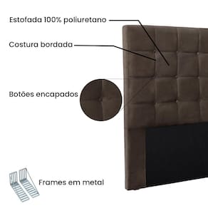 Dormir bem e manter-se seguro na hora de relaxar são fatores importantes que influenciam na qualidade do sono. Unir esses pontos com uma decoração incrível seria perfeito, não é mesmo? Que tal começar essa mudança pela cabeceira da sua cama!? A Cabeceira Verona sem dúvida vai roubar a cena de tão linda e aconchegante! Contém estrutura feita em madeira de eucalipto, uma opção que ressalta a durabilidade e beleza da peça. A cabeceira é preenchida com espuma D23, garantindo um conforto ideal para noites mais tranquilas. Este modelo é indicado para Cama Box Casal de 140 cm, possui costura quadriculada e Botões encapados que conferem uma textura maleável e um visual refinado. O revestimento foi feito no Veludo, um tecido de alta qualidade no tom Marrom perfeita para criar uma atmosfera mais aconchegante ao local. As sapata são de plástico além de serem muito resistentes garantem maior flexibilidade e sustentação à peça. E não menos importante acompanha frame em metal que é o suporte ideal para fixar a cabeceira na cama box. O design desta peça apresenta um elemento estético sofisticado, que transformará instantaneamente o ambiente e impedirá que a passagem de temperaturas (frio/quente) que se concentram na parede, passem diretamente para o usuário. A Cabeceira Verona é a opção mais adequada para o seu dormitório, afinal de contas você merece o que há de melhor para completar a decoração da sua casa. Adquira a Cabeceira Verona antes que acabe o estoque!