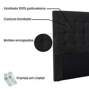 Dormir bem e manter-se seguro na hora de relaxar são fatores importantes que influenciam na qualidade do sono. Unir esses pontos com uma decoração incrível seria perfeito, não é mesmo? Que tal começar essa mudança pela cabeceira da sua cama!? A Cabeceira Verona sem dúvida vai roubar a cena de tão linda e aconchegante! Contém estrutura feita em madeira de eucalipto, uma opção que ressalta a durabilidade e beleza da peça. A cabeceira é preenchida com espuma D23, garantindo um conforto ideal para noites mais tranquilas. Este modelo é indicado para Cama Box Casal de 140 cm, possui costura quadriculada e Botões encapados que conferem uma textura maleável e um visual refinado. O revestimento foi feito no Veludo, um tecido de alta qualidade no tom Preto perfeita para criar uma atmosfera mais aconchegante ao local. As sapata são de plástico além de serem muito resistentes garantem maior flexibilidade e sustentação à peça. E não menos importante acompanha frame em metal que é o suporte ideal para fixar a cabeceira na cama box. O design desta peça apresenta um elemento estético sofisticado, que transformará instantaneamente o ambiente e impedirá que a passagem de temperaturas (frio/quente) que se concentram na parede, passem diretamente para o usuário. A Cabeceira Verona é a opção mais adequada para o seu dormitório, afinal de contas você merece o que há de melhor para completar a decoração da sua casa. Adquira a Cabeceira Verona antes que acabe o estoque!
