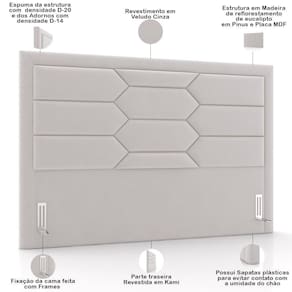 Largura: 161 | Profundidade: 13 | ColorSimple: Cinza | Lado a Lado: 13 | Altura: 141 | Peso: 28 kg | ColorSupplier: Cinza | ColorFamily: Cinza | Cor: Cinza | Color: Cinza | MaterialFamily: Madeira, Espuma, Tecido | Material: Madeira, Espuma, Tecido | DepthWidthSideToSide: 13 | ProductContents: 01 Cabeceira | Depth Front To Back: 13 | SupplierSimpleName: Cabeceira Cama Box Casal 140cm Estofada Nora P05 Veludo Cinza - Lyam Decor | OriginState: PR | ProductWidth: 161 cm | ProductHeight: 141 cm | OriginCountry: | Model: Nora | ProductWarranty: 90 dias após o do produto | SizeDescription: Altura: 141 cm x Largura: 161 cm x Profundidade: 13 cm | Material do estofamento: Veludo | ProductInstructions: Produto para uso em ambiente interno, nao devendo ficar exposto ao sol, calor e umidade excessivos. | ProductWeight: 28 kg | ProductLength: 13 cm