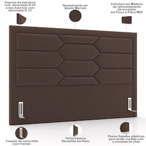 Largura: 161 | Material do estofamento: Veludo | Cor: Marrom | Material: Madeira, Espuma, Tecido | OriginCountry: | Altura: 141 | Lado a Lado: 13 | Color: Marrom | Profundidade: 13 | Depth Front To Back: 13 | SupplierSimpleName: Cabeceira Cama Box Casal 140cm Estofada Nora P05 Veludo Marrom - Lyam Decor | Peso: 28 kg | ColorSupplier: Marrom | ProductContents: 01 Cabeceira | ColorFamily: Marrom | ColorSimple: Marrom | MaterialFamily: Madeira, Espuma, Tecido | Model: Nora | DepthWidthSideToSide: 13 | SizeDescription: Altura: 141 cm x Largura: 161 cm x Profundidade: 13 cm | ProductWidth: 161 cm | OriginState: PR | ProductHeight: 141 cm | ProductWarranty: 90 dias após o do produto | ProductLength: 13 cm | ProductInstructions: Produto para uso em ambiente interno, nao devendo ficar exposto ao sol, calor e umidade excessivos. | ProductWeight: 28 kg
