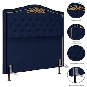 Cabeceira Cama Box Casal 140cm Imperial Veludo J02 Azul - Mpozenato