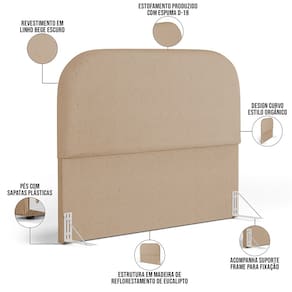 Cabeceira Cama Box Casal 140cm Orgânica Lanna W01 Linho Bege Escuro - Lyam Decor