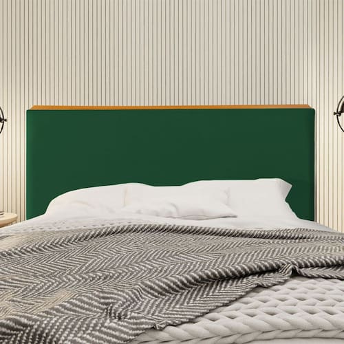 Cabeceira Cama Box Casal 1,40m Estofada Detalhe em Madeira Java Veludo Verde