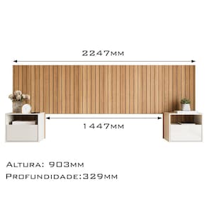 Cabeceira suspensa deve ser fixada na parede (já acompanha suporte e parafusos de fixação)
