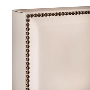Acabamento em fita de tachas de ferro galvanizado, na cor ouro velho.