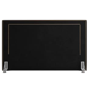 cabeceira casal estofada com espuma D20, estrutura em madeira de eucalipto e revestida com tecido veludo, suave ao toque. Já os pés metalizados deixam esse produto ainda mais elegante.