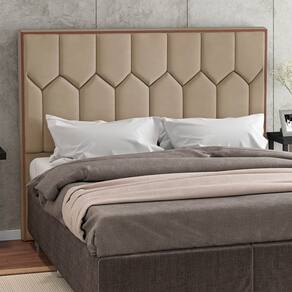 Características do Produto Material da estrutura: Madeira de Eucalipto. Material do Forro: Kami TNT. Densidade da Espuma do Painel: Espuma D20. Revestimento: Veludo. Possui Pés: Sim. Tipo de Pés: Sapatas Plásticas. Possui Frame: Sim. É adequado para cama box: Sim. Tamanhos de cama: Casal. Acompanha Mesa de Cabeceira: Não. Diferenciais: - Design moderno. - Costura em formas geométricas. - Para ter acesso ao frame, é necessário verificar a parte interna e traseira da Cabeceira. Sistema de Montagem: O produto é enviado montado, sendo necessário apenas a fixação do frame. Manual de Montagem: Não. Complexidade da Montagem: Baixa. Conteúdo da Embalagem: 1 Cabeceira. Volumes: 1 Volume. Garantia do Fabricante: 90 dias contra defeitos de fabricação. Montagem: Recomendamos que seja feita por um profissional. Recomendação de limpeza: Utilize pano levemente úmido.