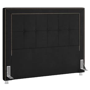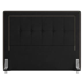 cabeceira estofada também é fantástica, já que possui estrutura em madeira de eucalipto com enchimento em espuma D20 e revestimento em tecido veludo, suave ao toque. Além disso, os pés são produzidos em acrílico com acabamento metalizado, o que agrega muito mais charme.