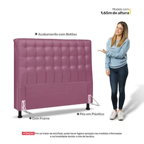 Com a Cabeceira Estofada Ciara, você não recebe apenas um produto de alta qualidade, mas também um pacote completo. Ela acompanha um resistente frame para fixação no box e pés de plástico (A cor dos pés pode variar de acordo com o lote), garantindo estabilidade e segurança.