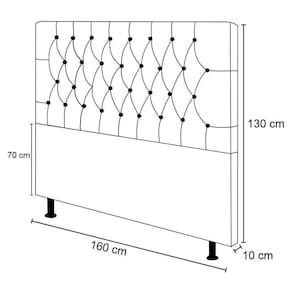 Largura: 160 cm | Altura: 130 cm | Profundidade: 10 cm | Peso: 10 kg | Cor: Preto | Requere Montagem: Sim | Material do Estofado: Suede | Tamanhos de Cama: Casal Queen