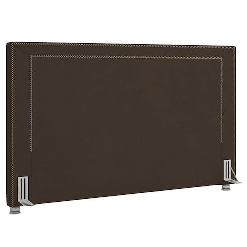 cabeceira casal estofada com espuma D20, estrutura em madeira de eucalipto e revestida com tecido veludo, suave ao toque. Já os pés metalizados deixam esse produto ainda mais elegante.