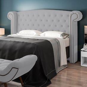 cabeceira provençal. Já as abas laterais com aplicação de tachinhas são um charme a parte, pois o desenho delineado remete às colunas jônicas gregas, ou seja, muito mais que um móvel estofado, você terá em casa um ícone de decoração inspirado na mais bela arquitetura.