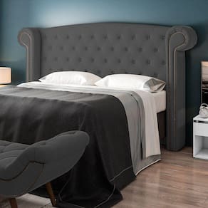 cabeceira casal estofada é um luxo só, isso porque o seu design curvo somado aos botões revestidos cria um ambiente clássico e charmoso, como toda