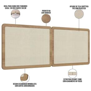 Com seu estilo escandinavo minimalista, essa cabeceira painel se destaca pela simplicidade e elegância, harmonizando-se facilmente com diferentes decorações. A paleta de cores neutras permite que seja combinada com uma variedade de roupas de cama e acessórios, criando um ambiente suave e acolhedor, ideal para momentos de descanso e relaxamento.