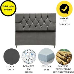 Cabeceira Cama Box Estofada Casal 140 Cm Geovana Suede Cor:cinza