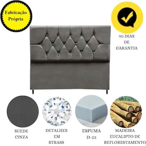 Simples detalhes são o suficiente para mudar a cara do seu quarto, não é? E um belo exemplo disso é a Cabeceira Estofada Geovana, revestida em suede e fabricada em madeira eucalipto de altíssima qualidade. Ah, sem contar que temos os detalhes em capitonê strass que dão um toque de sofisticação e elegância para o seu espaço. Ela é uma ótima alternativa não só para acompanhar sua cama, como também garantir que você tenha um apoio mais aconchegante para as costas quando estiver sentado.