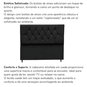 Com um design único e detalhes que encantam, Cabeceira Queen Moderna é a escolha certa para acompanhar sua cama e garantir momentos de relaxamento ainda mais aconchegantes. Seja para apoiar as costas enquanto lê um livro ou assistir TV, ela proporciona conforto incomparável e além disso os botões delicados com strass são cuidadosamente dispostos em uma padronagem de capitonê, acrescentando um toque de glamour e sofisticação.