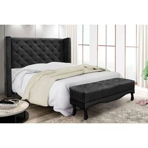 Cabeceira Cama Box King 195cm e Recamier Vicenza Veludo S04 - D`Rossi - Preto