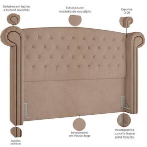 A Cabeceira Cama Box Casal King 195 cm P05 Sofia Veludo Bege - Lyam Decor é uma peça singular e elegante. Com design moderno, ela traz destaque e beleza na hora de compor seu quarto. Seus detalhes em tachas, denotam todo o cuidado e carinho na hora da produção. Uma cabeceira que trás presença, beleza e idade aos apreciadores do minimalismo, agregando valor aos pequenos detalhes. Com materiais de excelente qualidade e acabamento impecável, o revestimento em Veludo combina majestosamente com o restante da mobília. Podendo ser disposta com mesas de cabeceira e apoio, calçadeira ou recamier. É a composição perfeita para os amantes da elegância! Você merece o melhor, garanta já a sua!!