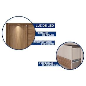01 - CARACTERÍSTICAS E BENEFÍCIOS GERAIS Quantidade de Gavetas - 2 Gavetas Quantidade de Nichos - 2 Nichos Material da Estrutura - MDF Tipo de Pintura - Texturizada Tipo de Acabamento da Pintura - Fosco Garantia - 3 Meses Certificação de Qualidade - Certificação de Qualidade Aprovada Diferenciais dos Móveis - Sim