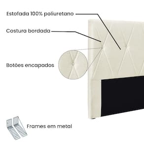 Dormir bem e manter-se seguro na hora de relaxar são fatores importantes que influenciam na qualidade do sono. Unir esses pontos com uma decoração incrível seria perfeito, não é mesmo? Que tal começar essa mudança pela cabeceira da sua cama!? A Cabeceira Aquilla sem dúvida vai roubar a cena de tão linda e aconchegante! A estrutura é feita em madeira de eucalipto, uma opção que ressalta a durabilidade e beleza da peça. A cabeceira é preenchida com espuma D23, garantindo um conforto ideal para noites mais tranquilas. Este modelo é indicado para Cama Box Queen de 160 cm, contém costura em losangos com botões encapados que conferem uma textura maleável e um visual refinado. O revestimento foi feito no Linho, um tecido de alta qualidade no tom Natural perfeita para criar uma atmosfera mais aconchegante ao local. As sapata são de plástico além de serem muito resistentes garantem maior flexibilidade e sustentação à peça. E não menos importante acompanha frame em metal que é o suporte ideal para fixar a cabeceira na cama box. O design desta peça apresenta um elemento estético sofisticado, que transformará instantaneamente o ambiente e impedirá que a passagem de temperaturas (frio/quente) que se concentram na parede, passem diretamente para o usuário. A Cabeceira Aquilla é a opção mais adequada para o seu dormitório, afinal de contas você merece o que há de melhor para completar a decoração da sua casa. Adquira a Cabeceira Aquilla antes que acabe o estoque! Dimensões da Cabeceira: Altura total: 125 cm Largura total: 160 cm Profundidade total: 8 cm Peso: 11 kg Especificações do Produto Estrutura: Madeira De Eucalipto Espuma: D-23 Tecido: Linho Tipo de pés: Sapatas Plasticas Garantia: 90 dias contra defeito de fabricação Montagem: Produto vai montado. Instruções de limpeza: Utilizar um pano limpo e levemente úmido Você irá receber: 01 Cabeceira Entregue em: 01 Volume