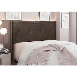Dormir bem e manter-se seguro na hora de relaxar são fatores importantes que influenciam na qualidade do sono. Unir esses pontos com uma decoração incrível seria perfeito, não é mesmo? Que tal começar essa mudança pela cabeceira da sua cama!? A Cabeceira Aquilla sem dúvida vai roubar a cena de tão linda e aconchegante! A estrutura é feita em madeira de eucalipto, uma opção que ressalta a durabilidade e beleza da peça. A cabeceira é preenchida com espuma D23, garantindo um conforto ideal para noites mais tranquilas. Este modelo é indicado para Cama Box Queen de 160 cm, contém costura em losangos com botões encapados que conferem uma textura maleável e um visual refinado. O revestimento foi feito no Veludo, um tecido de alta qualidade no tom Marrom perfeita para criar uma atmosfera mais aconchegante ao local. As sapata são de plástico além de serem muito resistentes garantem maior flexibilidade e sustentação à peça. E não menos importante acompanha frame em metal que é o suporte ideal para fixar a cabeceira na cama box. O design desta peça apresenta um elemento estético sofisticado, que transformará instantaneamente o ambiente e impedirá que a passagem de temperaturas (frio/quente) que se concentram na parede, passem diretamente para o usuário. A Cabeceira Aquilla é a opção mais adequada para o seu dormitório, afinal de contas você merece o que há de melhor para completar a decoração da sua casa. Adquira a Cabeceira Aquilla antes que acabe o estoque!
