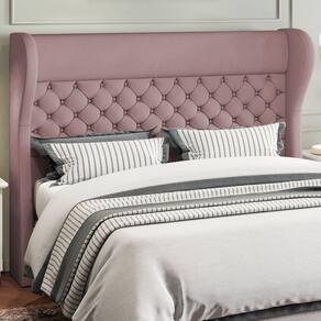 Cabeceira Cama Box Queen 160 cm P05 Madrid Veludo Rosê - Lyam Decor