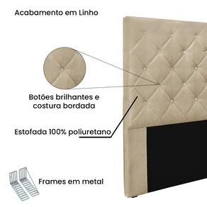 Dormir bem e manter-se seguro na hora de relaxar são fatores importantes que influenciam na qualidade do sono. Unir esses pontos com uma decoração incrível seria perfeito, não é mesmo? Que tal começar essa mudança pela cabeceira da sua cama!? A Cabeceira Tania sem dúvida vai roubar a cena de tão linda e aconchegante! A estrutura é feita em madeira de eucalipto, uma opção que ressalta a durabilidade e beleza da peça. A cabeceira é preenchida com espuma D23, garantindo um conforto ideal para noites mais tranquilas. Este modelo é indicado para Cama Box Queen de 160 cm, contém costura bordada em losangos com botões brilhantes que conferem uma textura maleável e um visual refinado. O revestimento foi feito no Linho, um tecido de alta qualidade no tom Dourado perfeita para criar uma atmosfera mais aconchegante ao local. As sapata são de plástico além de serem muito resistentes garantem maior flexibilidade e sustentação à peça. E não menos importante acompanha frame em metal que é o suporte ideal para fixar a cabeceira na cama box. O design desta peça apresenta um elemento estético sofisticado, que transformará instantaneamente o ambiente e impedirá que a passagem de temperaturas (frio/quente) que se concentram na parede, passem diretamente para o usuário. A Cabeceira Tania é a opção mais adequada para o seu dormitório, afinal de contas você merece o que há de melhor para completar a decoração da sua casa. Adquira a Cabeceira Tania antes que acabe o estoque!