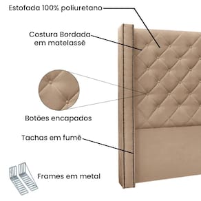 Diferenciais da Cabeceira: Botões Emcapados, Costura Bordada em Matelasse, Tachas em Fumê