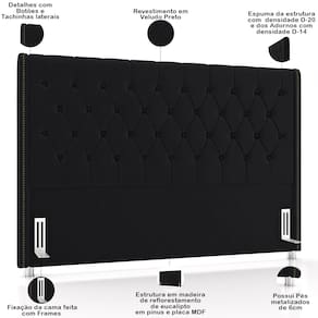 Chega de um quarto sem graça. Adicione um toque clássico ao seu ambiente com a Cabeceira Estofada Frizza , da Lyam Decor. Com um design atemporal e sofisticado, essa cabeceira conta com detalhes que agregam muito mais charme como, por exemplo, o padrão dos adornos em botonê e as tachinhas laterais que emolduram a beleza dessa peça, ou seja, uma cabeceira para cama box que vai transformar seu quarto casal em um espaço luxuoso e aconchegante. Mas não somente de beleza se faz uma cabeceira, por isso, garantimos a qualidade, uma vez que é confeccionada com madeira de reflorestamento, além de receber tratamento contra mofo e cupins, para que você tenha um mobiliário durável e resistente. Para completar, os pés metalizados adicionam um charme extra e, ainda, evita o contato direto com o chão e umidade. Demais não é mesmo?! Deixe-se envolver pelo conforto e tenha noites de sono relaxantes e aconchegantes com a Cabeceira Queen Frizza. Você terá um visual impressionante aliado à funcionalidade excepcional!