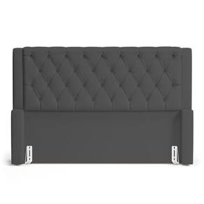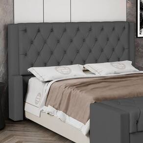 Cabeceira Cama Box Queen Size Atena 180cm Capitonê com Frame Suede Cinza - Desk Design