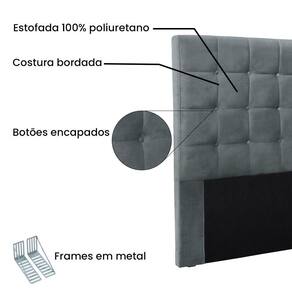 Dormir bem e manter-se seguro na hora de relaxar são fatores importantes que influenciam na qualidade do sono. Unir esses pontos com uma decoração incrível seria perfeito, não é mesmo? Que tal começar essa mudança pela cabeceira da sua cama!? A Cabeceira Verona sem dúvida vai roubar a cena de tão linda e aconchegante! Contém estrutura feita em madeira de eucalipto, uma opção que ressalta a durabilidade e beleza da peça. A cabeceira é preenchida com espuma D23, garantindo um conforto ideal para noites mais tranquilas. Este modelo é indicado para Cama Box Solteiro de 90 cm, possui costura quadriculada e Botões encapados que conferem uma textura maleável e um visual refinado. O revestimento foi feito no Veludo, um tecido de alta qualidade no tom Cinza perfeita para criar uma atmosfera mais aconchegante ao local. As sapata são de plástico além de serem muito resistentes garantem maior flexibilidade e sustentação à peça. E não menos importante acompanha frame em metal que é o suporte ideal para fixar a cabeceira na cama box. O design desta peça apresenta um elemento estético sofisticado, que transformará instantaneamente o ambiente e impedirá que a passagem de temperaturas (frio/quente) que se concentram na parede, passem diretamente para o usuário. A Cabeceira Verona é a opção mais adequada para o seu dormitório, afinal de contas você merece o que há de melhor para completar a decoração da sua casa. Adquira a Cabeceira Verona antes que acabe o estoque!
