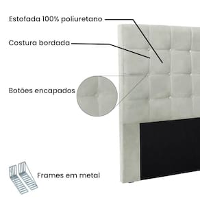 Dormir bem e manter-se seguro na hora de relaxar são fatores importantes que influenciam na qualidade do sono. Unir esses pontos com uma decoração incrível seria perfeito, não é mesmo? Que tal começar essa mudança pela cabeceira da sua cama!? A Cabeceira Verona sem dúvida vai roubar a cena de tão linda e aconchegante! Contém estrutura feita em madeira de eucalipto, uma opção que ressalta a durabilidade e beleza da peça. A cabeceira é preenchida com espuma D23, garantindo um conforto ideal para noites mais tranquilas. Este modelo é indicado para Cama Box Solteiro de 90 cm, possui costura quadriculada e Botões encapados que conferem uma textura maleável e um visual refinado. O revestimento foi feito no Veludo, um tecido de alta qualidade no tom Prata perfeita para criar uma atmosfera mais aconchegante ao local. As sapata são de plástico além de serem muito resistentes garantem maior flexibilidade e sustentação à peça. E não menos importante acompanha frame em metal que é o suporte ideal para fixar a cabeceira na cama box. O design desta peça apresenta um elemento estético sofisticado, que transformará instantaneamente o ambiente e impedirá que a passagem de temperaturas (frio/quente) que se concentram na parede, passem diretamente para o usuário. A Cabeceira Verona é a opção mais adequada para o seu dormitório, afinal de contas você merece o que há de melhor para completar a decoração da sua casa. Adquira a Cabeceira Verona antes que acabe o estoque!
