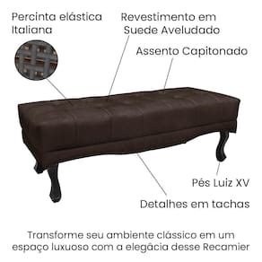 Diferenciais da do Recamier: Tachinhas em metal fumê. No assento possui detalhes em capitonê e percinta elástica Italiana