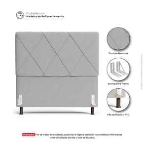 Cabeceira Cama Box Solteiro Mel 90cm Com Frame Veludo Cinza Claro - Desk Design - Blush