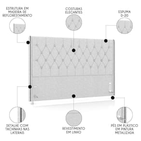 Adicione um toque de estilo e aconchego ao seu quarto com a Cabeceira Cama Casal Queen 160 cm Florenza P02 Linho Cinza Claro.