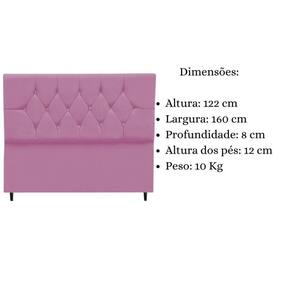 Com dimensões imponentes, possui uma altura de 122 cm que cria uma presença marcante e luxuosa no ambiente. A largura de 160 cm oferece uma cobertura ideal para camas queen size, garantindo um visual harmonioso e sofisticado. Com apenas 8 cm de profundidade, a cabeceira se encaixa perfeitamente na estrutura da cama, proporcionando um acabamento impecável.