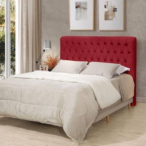 AS IMAGENS SÃO MERAMENTE ILUSTRATIVAS E PODEM SOFRER VARIAÇÕES DE COR E PEQUENOS DETALHES DE ACORDO COM O SEU MONITOR, ILUMINAÇÃO DO AMBIENTE E ATÉ MESMO A SUA PERCEPÇÃO VISUAL.Cabeceira Cama Queen Estofada 1,60 - Inca Veludo Vermelho