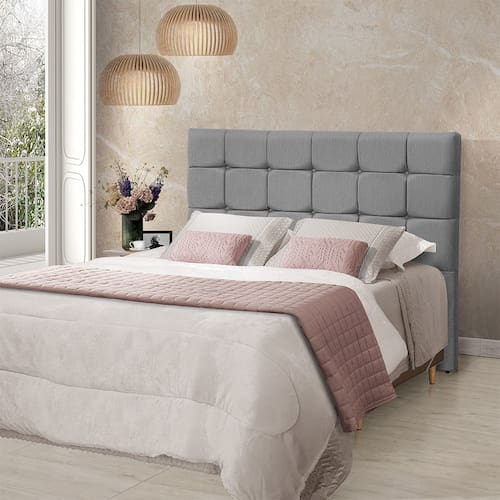 Tipo: Cabeceira Modelo: Maia Cor: Cinza Tecido: Linho Estofado com tecido, toque suave e elegante Detalhe em capitonê (técnica de estofamento) quadriculado que valoriza o ambiente Estrutura resistente com pés e suportes metálicos de fixação Fabricada com madeira de reflorestamento (eucalipto/MDF) Instalação simples e prática - basta encaixar e fixar