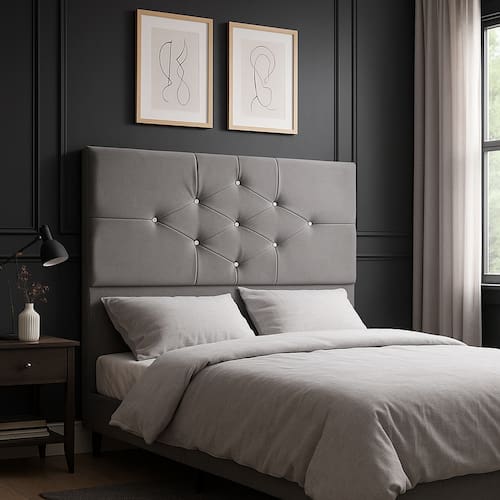Cabeceira Estofada em Suede com Detalhes em Botonê de Cristal – Design Elegante e Sofisticado