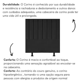 Fabricada com materiais de alta qualidade, como madeira eucalipto e revestimento em corino, esta cabeceira é durável e resistente, garantindo não apenas estilo, mas também funcionalidade para o seu ambiente.