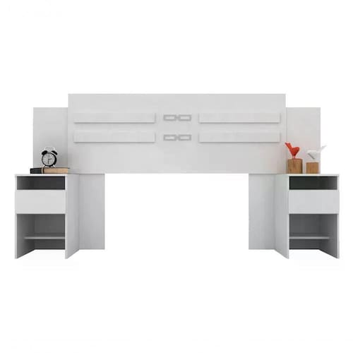 Cabeceira Casal 02 Gavetas Triunfo Branco Demobile Branco Cabeceira casal Triunfo, ideal para deixar o seu quarto com o design ainda mais moderno e arrojado. Estrutura 100% em MDP, feita com material ecológicamente correto, para melhor durabilidade e resistencia à peça, contando com acabamento em pintura UV. Composta por 02 mesas de cabeceira, 02 gavetas externas com corrediças metálicas, prateleiras externas, nichos para objetos decorativos, e também é extensível possuindo montagem com duas opções na largura. É ideal para cama box casal de 138cm e 158cm. Este móvel chegará em sua casa separado em 01 volume. Dimensões Altura 116 cm Largura 216-236 cm Profundidade 38 cm