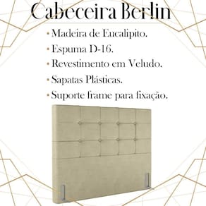 Cabeceira Casal 138 cm Berlin Veludo, ideal para inovar o seu quarto com toque luxuoso e ao mesmo tempo refinado. Estrutura em madeira de eucalipto, que oferece maior durabilidade ao produto. Composta por revestimento em tecido veludo, conta com espuma D-16 de altíssima qualidade, sapatas plásticas e acompanha frames para facilitar a fixação no box, é ideal para colchão Casal de 138 cm. Unindo elementos do design contemporâneo, que proporcionam uma ambientação moderna e com acabamentos sofisticados. Este móvel chegará na sua casa separado em 01 volume.