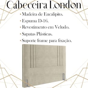 Cabeceira Casal 138 cm London Veludo, ideal para inovar o seu quarto com toque luxuoso e ao mesmo tempo refinado. Estrutura em madeira de eucalipto, que oferece maior durabilidade ao produto. Composta por revestimento em tecido veludo, conta com espuma D-16 de altíssima qualidade, sapatas plásticas e acompanha frames para facilitar a fixação no box, é ideal para colchão Casal de 138 cm. Unindo elementos do design contemporâneo, que proporcionam uma ambientação moderna e com acabamentos sofisticados. Este móvel chegará na sua casa separado em 01 volume.