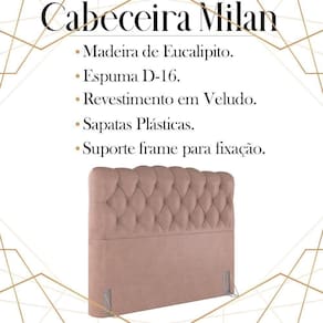 Cabeceira Casal 138 cm Milan Veludo, é a escolha certa para você que busca conforto e modernidade, tornando o seu quarto muito mais versátil e sofisticado. Estrutura em madeira de eucalipto, que oferece maior durabilidade ao produto. Composta por revestimento em tecido veludo, conta com espuma D-16 de altíssima qualidade, sapatas plásticas e acompanha frames para facilitar a fixação no box, é ideal para colchão Casal de 138 cm. Com design que proporciona elegância, charme e luxuosidade ao seu quarto. Este móvel chegará na sua casa separado em 01 volume.